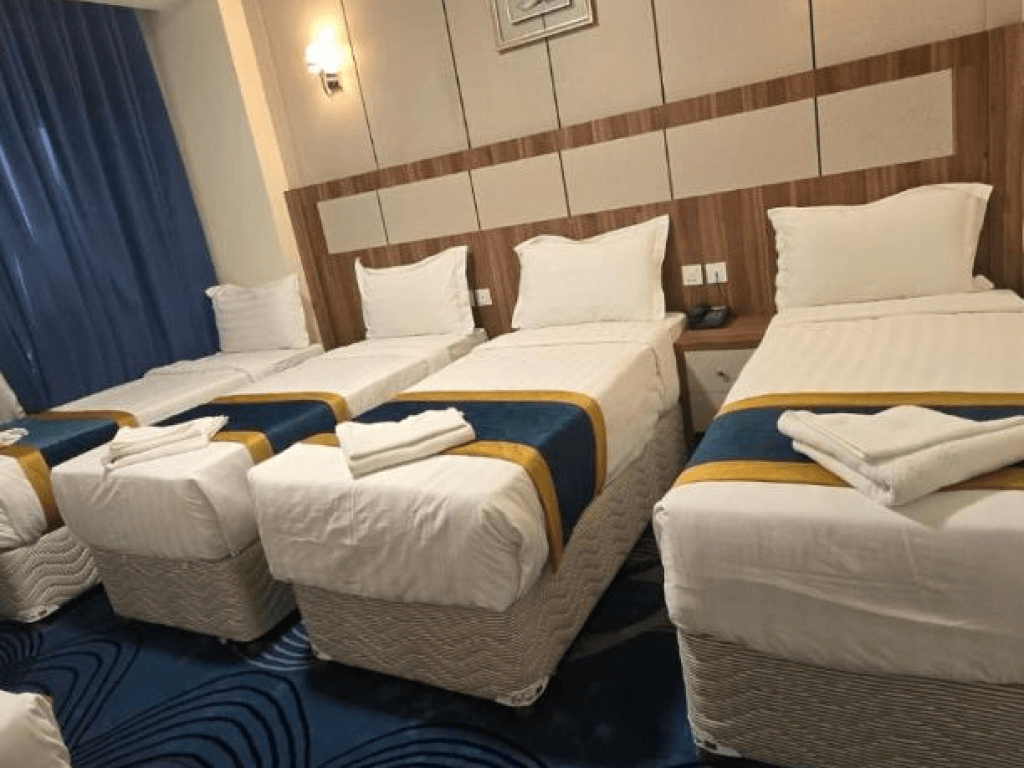 9.Khusus Untuk Fasilitas Hotel bintang 4,apabila ada kelebihan1 orang jamaah baik laki-laki maupun perempuan, maka akan mendapatkan fasilitas hotel sekamar berlima (Quint) dengan tidak merubah harga.